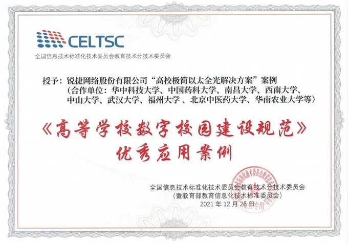 銳捷獲評教育部標(biāo)委會2021《高等學(xué)校數(shù)字校園建設(shè)規(guī)范》優(yōu)秀應(yīng)用案例