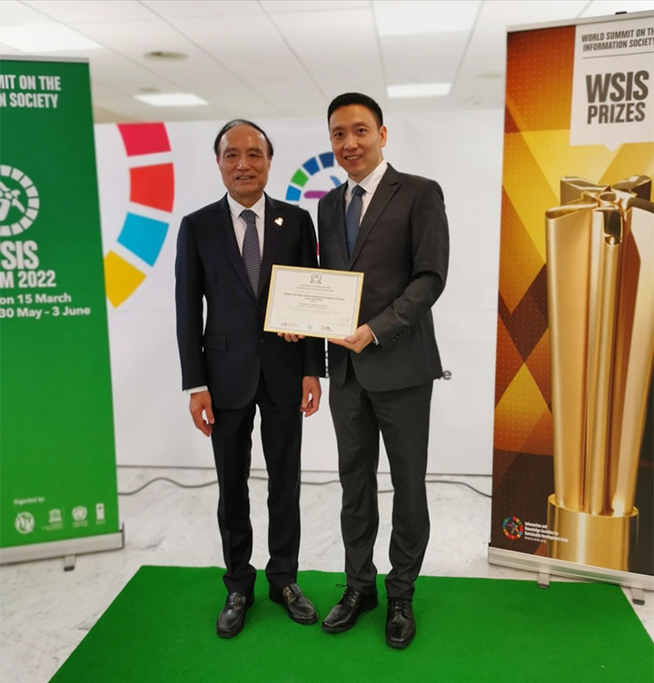 國際電信聯(lián)盟秘書長趙厚麟為華為頒發(fā)WSIS2022冠軍獎證書