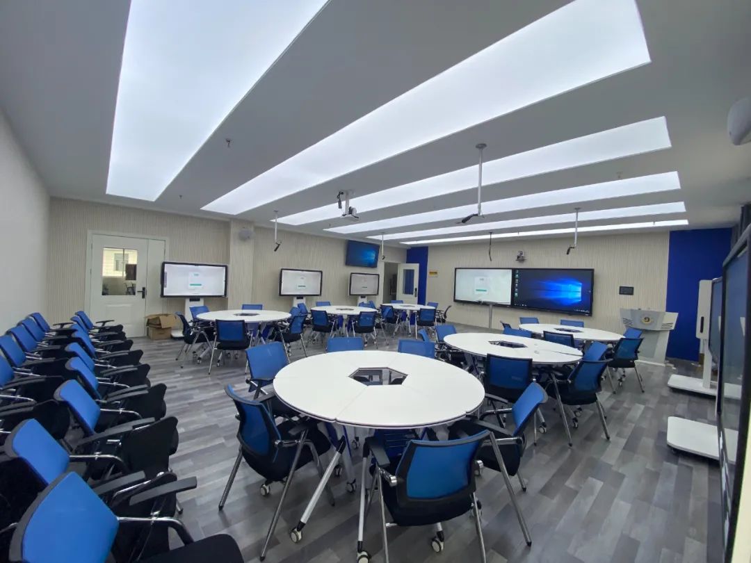 黃淮學(xué)院基于實際教學(xué)環(huán)境,靈活配置銳捷智慧教室系統(tǒng)。其中,多屏協(xié)作研討系統(tǒng),通過構(gòu)建移動式小組信息島,并搭配教學(xué)智能終端,極簡流化架構(gòu),最大程度保障大屏與小組屏調(diào)度靈活,一鍵開啟教師屏,下發(fā)權(quán)限讓學(xué)生自由討論,小組成果對比,然后全班觀摩展示。從課堂知識傳授,到以學(xué)生為中心,助力課堂結(jié)構(gòu)變革,可以很好地實現(xiàn)互動性教學(xué)、個性化教學(xué)和小班化教學(xué),同時搭配討論墻,讓研討流程更加標(biāo)準(zhǔn)化,助力TBL/PBL/探究式教學(xué)成果落地。